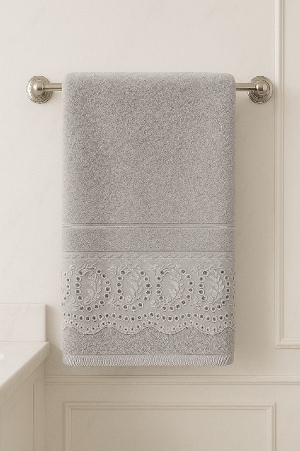 As toalhas Elegance Bordada unem sofisticação e conforto em cada detalhe. Produzidas em 100% algodão felpudo, oferecem maciez extrema, alta absorção e um toque aconchegante para o dia a dia. O diferencial está na borda trabalhada em bordado ornamental, que traz um charme delicado e atemporal ao ambiente. Disponíveis em cores modernas e elegantes, como cinza suave, rosé sofisticado e gelo clássico, combinam perfeitamente com banheiros que valorizam estilo e requinte.